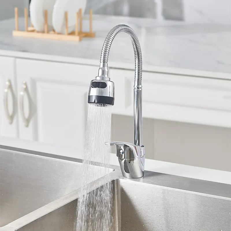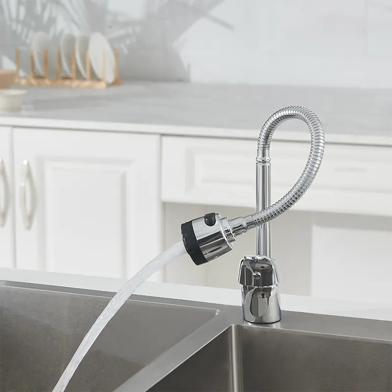 Le robinet de cuisine avec une tête d'arrosage de fleur peut tourner jusqu'à 360 °, couvrant toute la zone du réservoir d'eau; Il fournit trois modes de sortie d'eau (douche calme et douce et pressurisée et puissante brosse à eau double) pour répondre à différents besoins de nettoyage.